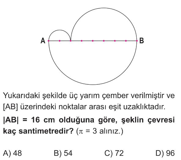6. Sınıf Çemberde Merkez Açı ve Açının Gördüğü Yayın Uzunluğu Test 1