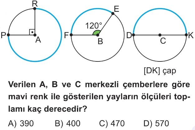 6. Sınıf Çemberde Merkez Açı ve Açının Gördüğü Yayın Uzunluğu Test 1