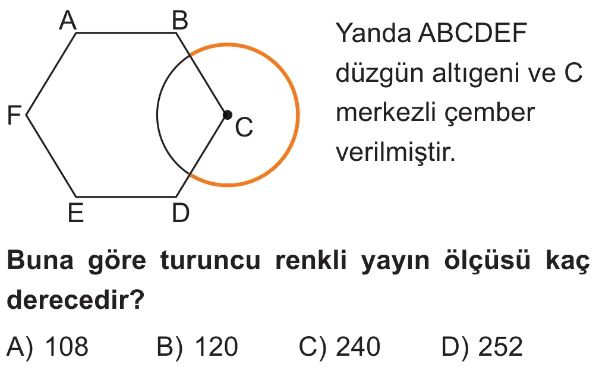 6. Sınıf Çemberde Merkez Açı ve Açının Gördüğü Yayın Uzunluğu Test 2