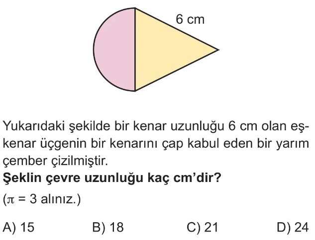 6. Sınıf Çemberde Merkez Açı ve Açının Gördüğü Yayın Uzunluğu Test 2