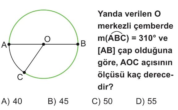 6. Sınıf Çemberde Merkez Açı ve Açının Gördüğü Yayın Uzunluğu Test 2