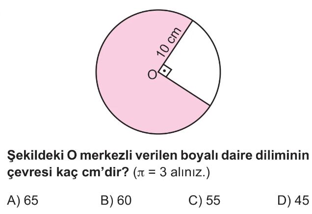 6. Sınıf Çemberde Merkez Açı ve Açının Gördüğü Yayın Uzunluğu Test 2