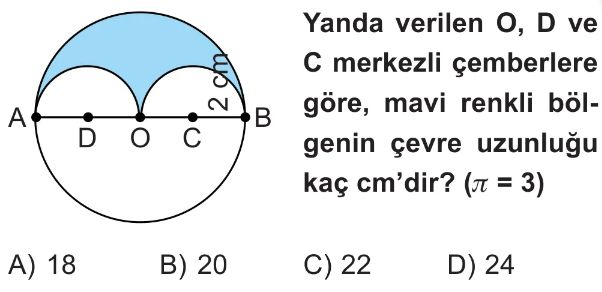 6. Sınıf Çemberde Merkez Açı ve Açının Gördüğü Yayın Uzunluğu Test 2