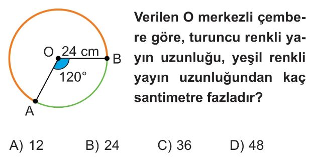 6. Sınıf Çemberde Merkez Açı ve Açının Gördüğü Yayın Uzunluğu Test 2