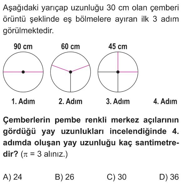 6. Sınıf Çemberde Merkez Açı ve Açının Gördüğü Yayın Uzunluğu Test 2