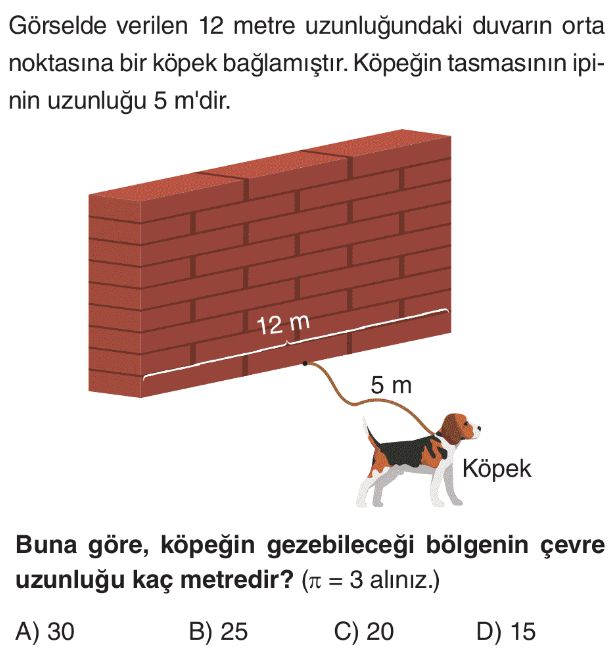 6. Sınıf Çemberde Merkez Açı ve Açının Gördüğü Yayın Uzunluğu Test 2