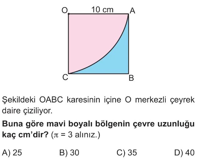 6. Sınıf Çemberde Merkez Açı ve Açının Gördüğü Yayın Uzunluğu Test 4
