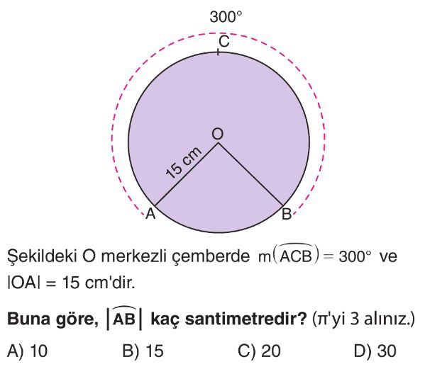 6. Sınıf Çemberde Merkez Açı ve Açının Gördüğü Yayın Uzunluğu Test 4