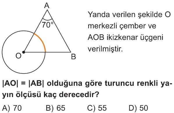 6. Sınıf Çemberde Merkez Açı ve Açının Gördüğü Yayın Uzunluğu Test 4