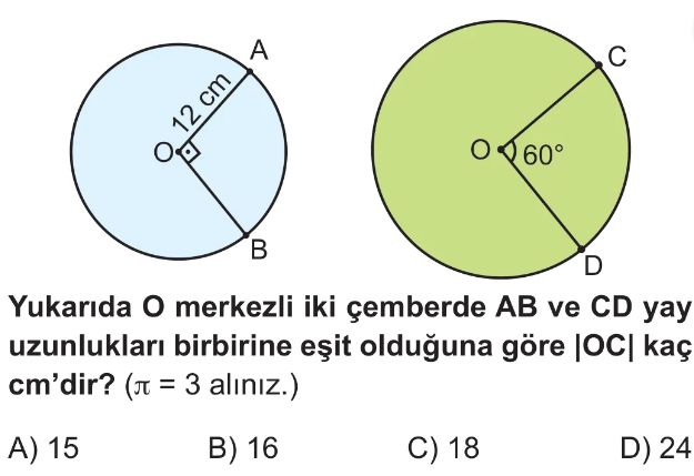 6. Sınıf Çemberde Merkez Açı ve Açının Gördüğü Yayın Uzunluğu Test 4