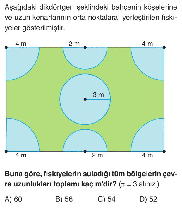 6. Sınıf Çemberde Merkez Açı ve Açının Gördüğü Yayın Uzunluğu Test 4