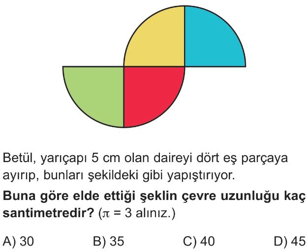 6. Sınıf Çemberde Merkez Açı ve Açının Gördüğü Yayın Uzunluğu Test 5