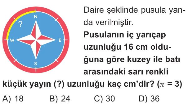 6. Sınıf Çemberde Merkez Açı ve Açının Gördüğü Yayın Uzunluğu Test 5