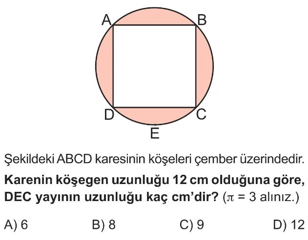 6. Sınıf Çemberde Merkez Açı ve Açının Gördüğü Yayın Uzunluğu Test 5