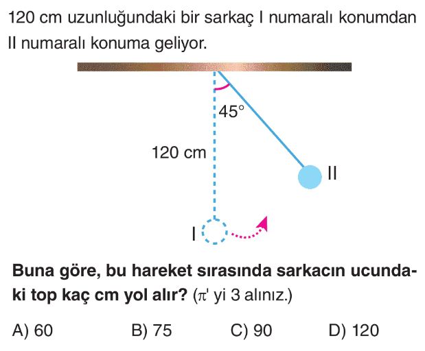 6. Sınıf Çemberde Merkez Açı ve Açının Gördüğü Yayın Uzunluğu Test 5