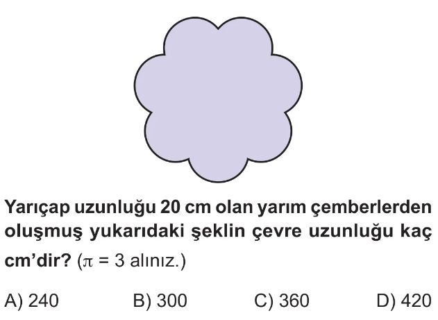 6. Sınıf Çemberde Merkez Açı ve Açının Gördüğü Yayın Uzunluğu Test 6