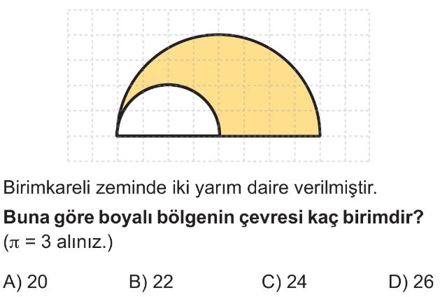 6. Sınıf Çemberde Merkez Açı ve Açının Gördüğü Yayın Uzunluğu Test 6