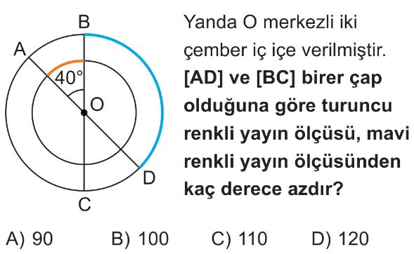 6. Sınıf Çemberde Merkez Açı ve Açının Gördüğü Yayın Uzunluğu Test 7