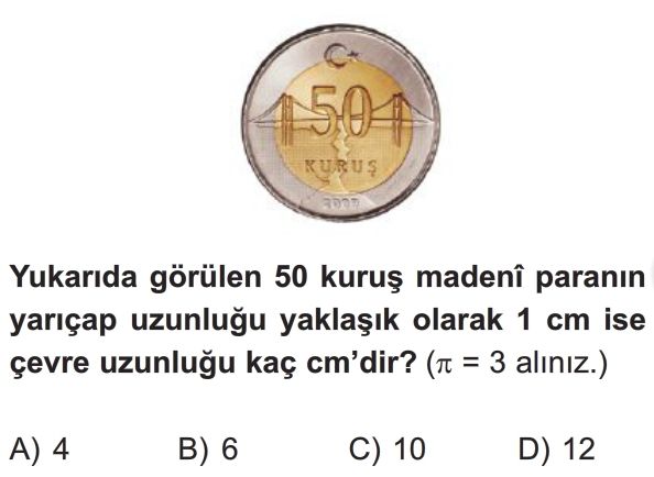 6. Sınıf Gerçek Yaşam Problemleri (Çember) Test 2