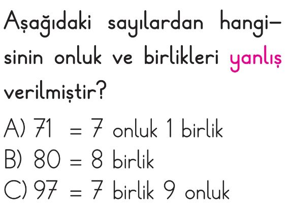 2. Sınıf Sayılar ve Nicelikler 1 Tema Değerlendirme Test 1