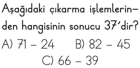 2. Sınıf Toplama ve Çıkarma İşlemi Test 1