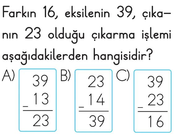 2. Sınıf Toplama ve Çıkarma İşlemi Test 3