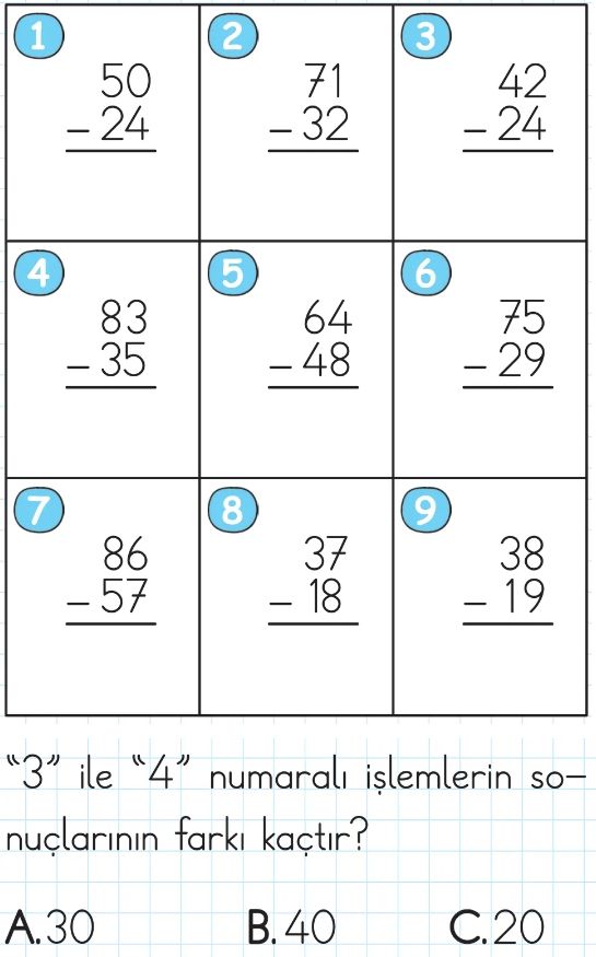 2. Sınıf Toplama ve Çıkarma İşlemi Test 5