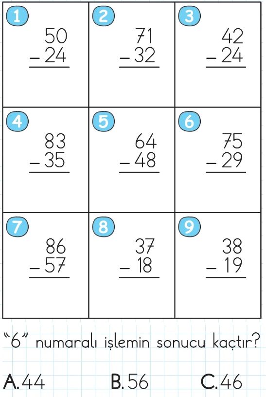 2. Sınıf Toplama ve Çıkarma İşlemi Test 6