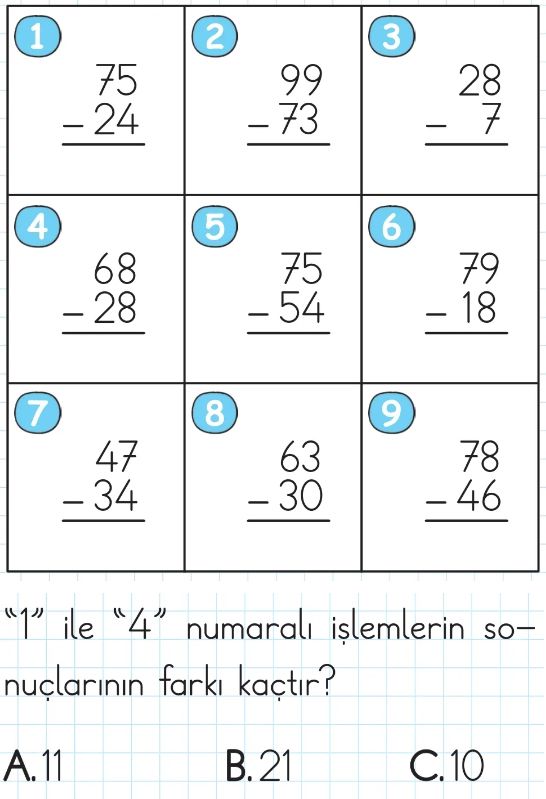 2. Sınıf Toplama ve Çıkarma İşlemi Test 6