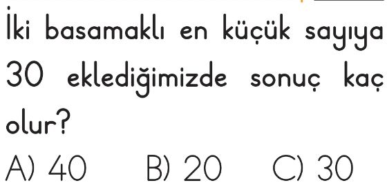 2. Sınıf Toplama ve Çıkarma İşlemleriyle İlgili Problemler Test 1