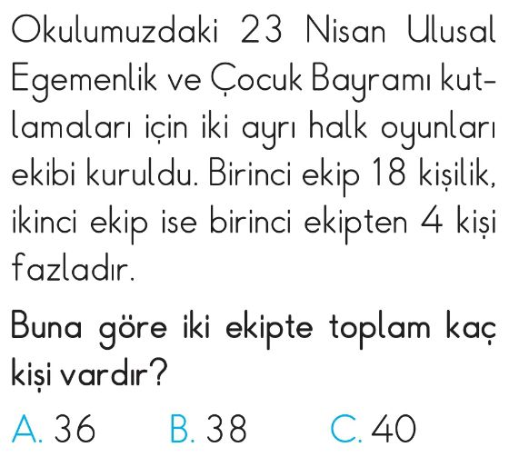 2. Sınıf Toplama ve Çıkarma İşlemleriyle İlgili Problemler Test 2