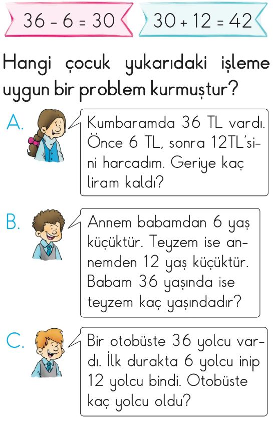 2. Sınıf Toplama ve Çıkarma İşlemleriyle İlgili Problemler Test 3