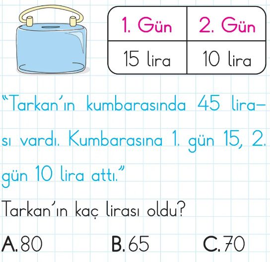 2. Sınıf Toplama ve Çıkarma İşlemleriyle İlgili Problemler Test 6