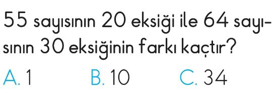 2. Sınıf Toplama ve Çıkarma İşlemleriyle İlgili Problemler Test 6