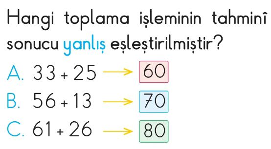 2. Sınıf Toplama ve Çıkarma İşlemlerinin Sonuçlarını Tahmin Etme Test 1