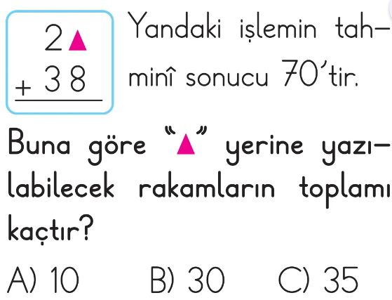 2. Sınıf Toplama ve Çıkarma İşlemlerinin Sonuçlarını Tahmin Etme Test 1