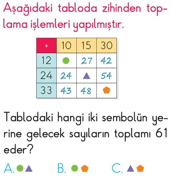 2. Sınıf Toplama ve Çıkarma İşlemlerinin Sonuçlarını Tahmin Etme Test 2