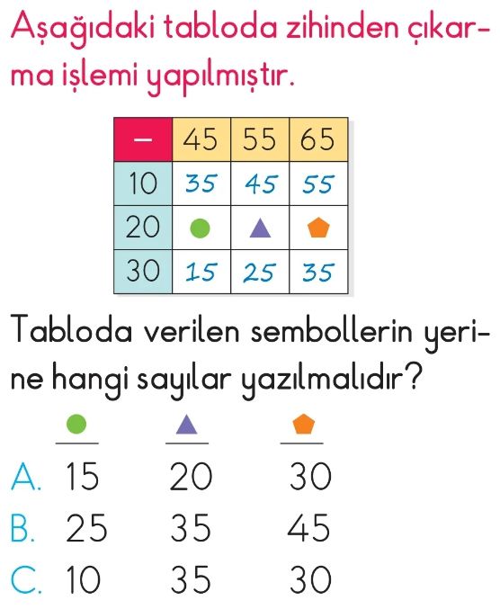 2. Sınıf Toplama ve Çıkarma İşlemlerinin Sonuçlarını Tahmin Etme Test 3
