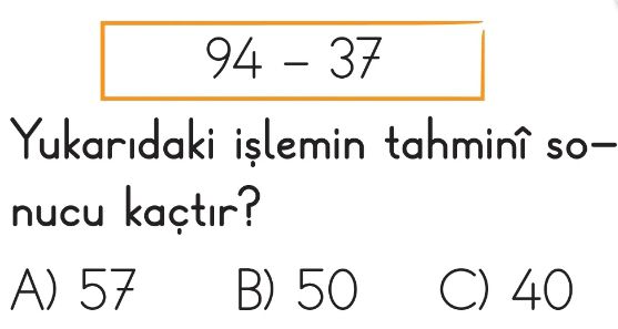 2. Sınıf Toplama ve Çıkarma İşlemlerinin Sonuçlarını Tahmin Etme Test 3