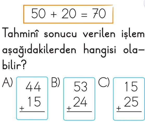 2. Sınıf Toplama ve Çıkarma İşlemlerinin Sonuçlarını Tahmin Etme Test 4