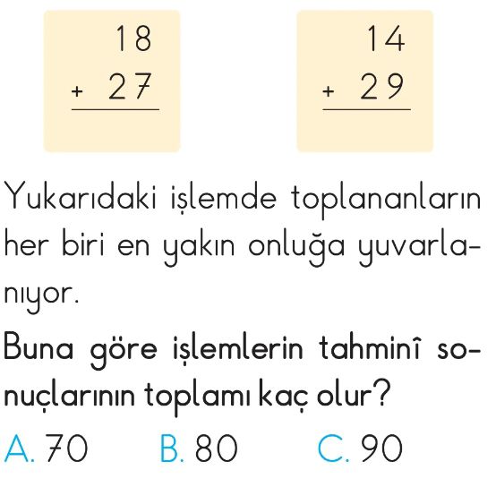 2. Sınıf Toplama ve Çıkarma İşlemlerinin Sonuçlarını Tahmin Etme Test 4