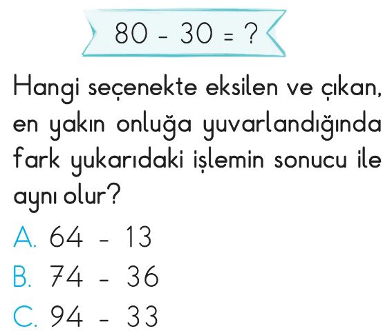 2. Sınıf Toplama ve Çıkarma İşlemlerinin Sonuçlarını Tahmin Etme Test 5