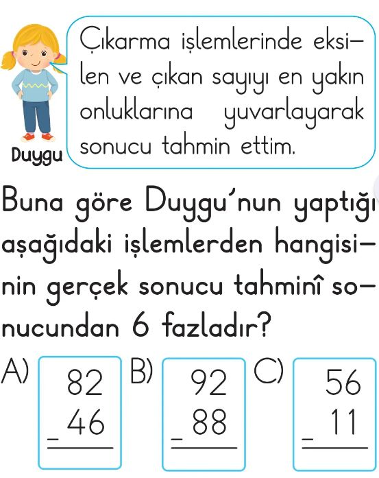2. Sınıf Toplama ve Çıkarma İşlemlerinin Sonuçlarını Tahmin Etme Test 5