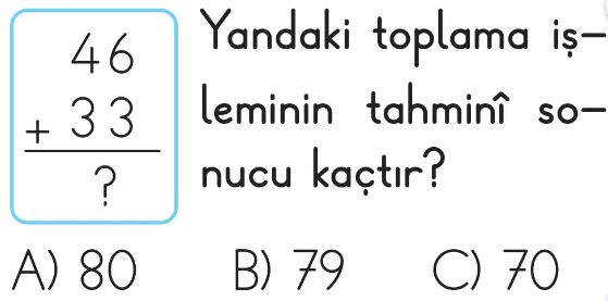 2. Sınıf Toplama ve Çıkarma İşlemlerinin Sonuçlarını Tahmin Etme Test 6