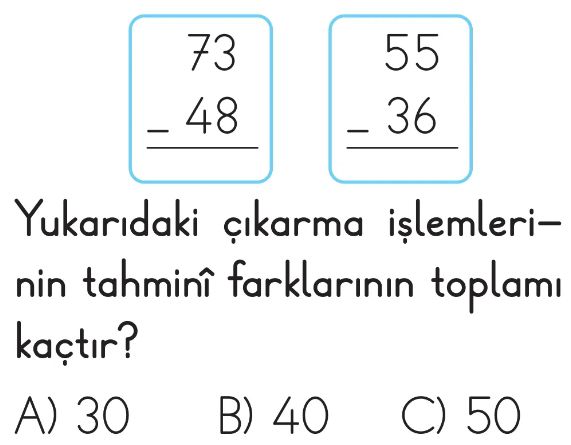 2. Sınıf Toplama ve Çıkarma İşlemlerinin Sonuçlarını Tahmin Etme Test 6