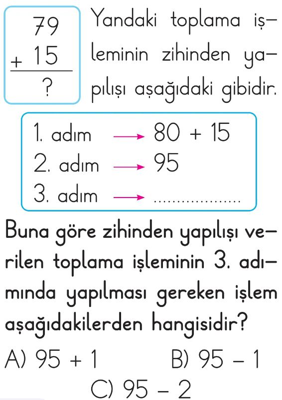 2. Sınıf Toplama ve Çıkarma İşlemlerinin Sonuçlarını Tahmin Etme Test 7