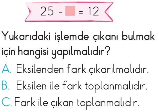2. Sınıf Toplama ve Çıkarma İşlemlerinin İlişkisi (Verilmeyen Toplanan, Eksilen, Çıkan) Test 2