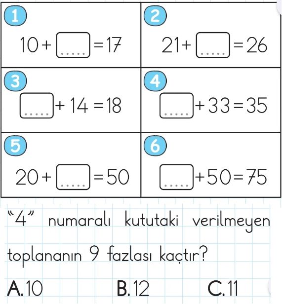 2. Sınıf Toplama ve Çıkarma İşlemlerinin İlişkisi (Verilmeyen Toplanan, Eksilen, Çıkan) Test 3