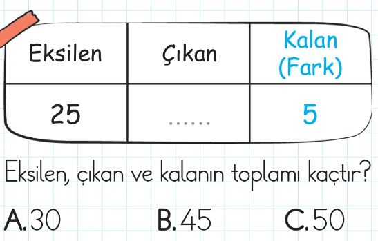 2. Sınıf Toplama ve Çıkarma İşlemlerinin İlişkisi (Verilmeyen Toplanan, Eksilen, Çıkan) Test 3