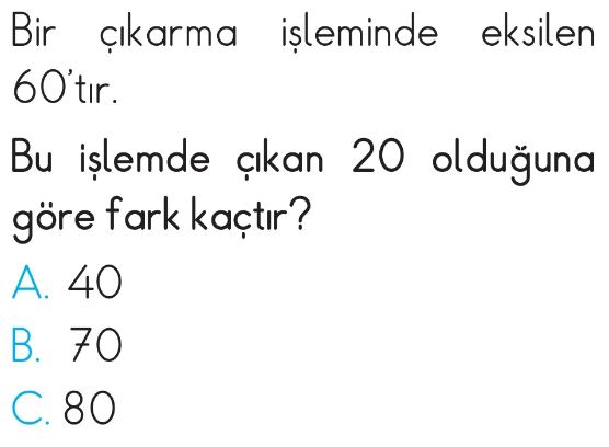 2. Sınıf Toplama ve Çıkarma İşlemlerinin İlişkisi (Verilmeyen Toplanan, Eksilen, Çıkan) Test 4